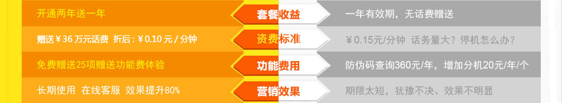 | 卓誠通訊為企業(yè)再送"好通信配400電話"!與國內(nèi)企業(yè)再度聯(lián)手,傾力推出"金秋豪禮大派送,感恩回饋"特大優(yōu)惠促銷活動!凡于活動時間內(nèi)成功辦理以下套餐,即可獲贈千元話費!或選擇相對應的禮品,為保證禮品質(zhì)量,活動所有禮品均全程由所屬公司或"網(wǎng)上"直接配送到戶,確保正品行貨,含發(fā)票全國聯(lián)保?;顒訁⑴c熱線:400-9959-400 |